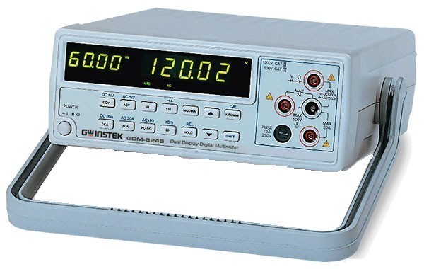 Вольтметр GDM-8245: 5 разрядов, динамический диапазон 50000, СД индикаторы; Мультиметр: Постоянное напряжение (500 мВ ... 1200 В); Переменное напряжение (500 мВ ... 1200 В); Постоянный/Переменный ток (500 мкА ... 20 А); Сопротивление (500 Ом ... 20 МОм); Емкость (5 нФ ... 50 мкФ); Частота (10 Гц ... 200 кГц); Прозвон цепи; Испытание P-N перехода; Базовая погрешность ± 0,03 %; Разрешение: 10 мкВ, 10 нА, 10 мОм