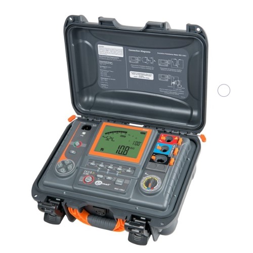 MIC-15k1 – это цифровой мегаомметр, который предназначен для испытаний электрической прочности и измерения сопротивления изоляции электроустановок системы электроснабжения под действием электромагнитного поля сверхвысокого класса напряжения. Максимальное измерительное напряжение составляет 15000 В постоянного тока с диапазоном измеряемого сопротивления до 40 ТОм. Установка трёх интервалов времени позволяет автоматически рассчитывать коэффициент абсорбции (увлажнённости), поляризации (старения) и коэффициент разряда диэлектрика. В процессе измерения сопротивления изоляции происходит измерение ёмкости и тока утечки. Электромагнитные помехи, благодаря встроенному цифровому фильтру, не влияют на результат измерений.