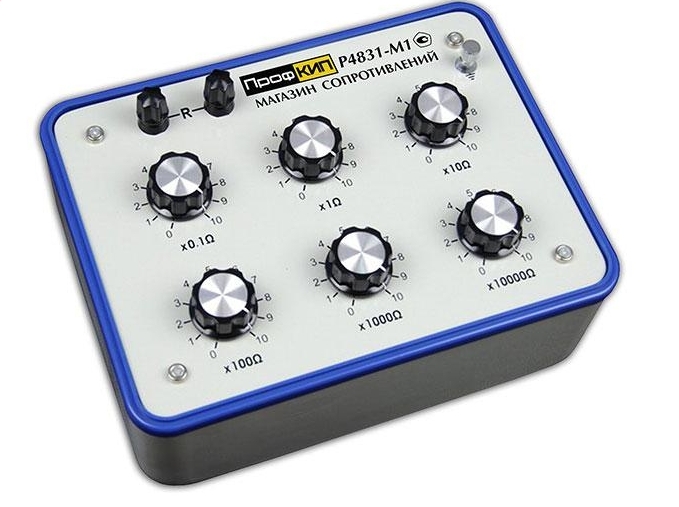 Магазин сопротивления ПрофКиП Р4834 (разработка 2020 года) предназначен для воспроизведения значений электрического сопротивления постоянному току и для применения в качестве многозначной меры электрического сопротивления (ММЭС) в цепях постоянного тока. Принцип действия магазина сопротивлений заключается в воспроизведении необходимых значений сопротивлений с помощью резистивных элементов. Конструктивно магазин сопротивлений состоят из последовательно соединенных равнономинальных прецизионных резисторов, установленных в каждой декад. Приборы разработаны и выпущены компанией ПрофКиП взамен магазинов: Р4834 (Украина) и ПрофКиП Р4834-М1 (разработка 2012 года).